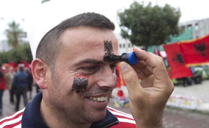 Ulice su krcate, masa ljudi sa albanskim nacionalnim simbolima zaposela je grad, čeka se početak koji je tek za osam časova. Pada i kiša, s vremena na vreme, ali to ne smeta atmosferi, sa dosta optimizma domaći očekuju meč.