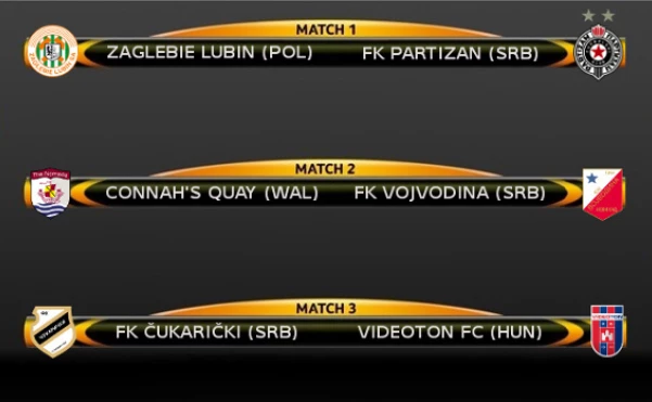 Vojvodina 2:0KonhsnZaglebje 1:1 Partizan(prolazi partizan zbog gola u gostima) Čuka 0:1 Videoton