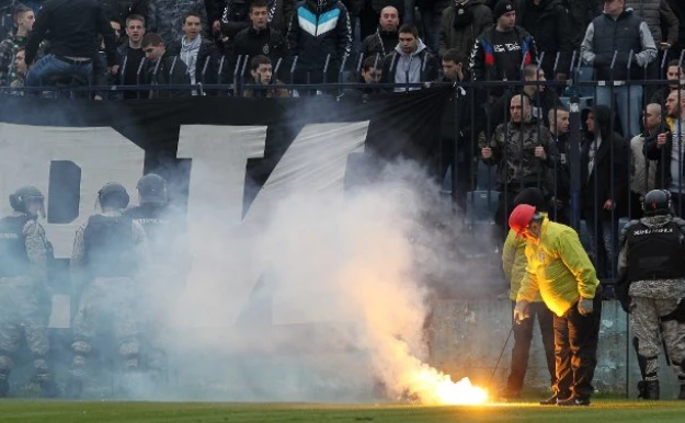 prvo, tuzilastvo mora da zabrani sve navijacke grupe u zemlji, pa cak i onog zabacenog sela ako ima organizovanu navijacku grupu, drugo, nisu predsednici i rukovodstvo klubova palili baklje vec pojedinci, lepo se na oba meca vide lica navijaca koji pale, drze i bacaju baklje, pa lepo njih pohapsite, procesuirajte, i kaznite i trece, ukoliko se dokaze da je rukovodstvo dozvolilo da se te baklje unesu pored redarske sluzbe onda kazniti te klubove...