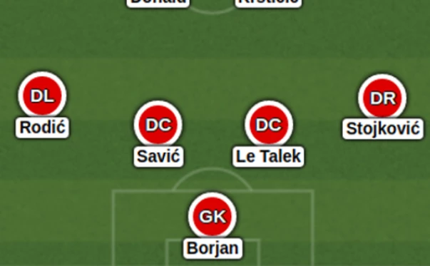 Krstičić koji se lagano sve bolje uklapa u ovu ekipu će biti par sa standardnim Donaldom, dok bi ofanzivnu trojku na sredini terena trebalo da čine Srnić, Radonjić i Kanga. Naravno, Boaći će najverovatnije početi na poziciji napadača, a Pešić će čekati šansu sa klupe i dobiti je najverovatnije u drugom poluvremenu osim ako se ne desi nešto nepredviđeno.