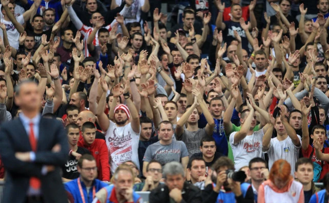 Među navijačima Crvene zvezde tokom prvog poluvremena večerašnjeg derbija je vidno nezadovoljstvo arbitražom i prevelimim brojem slobodnih bacanja.
