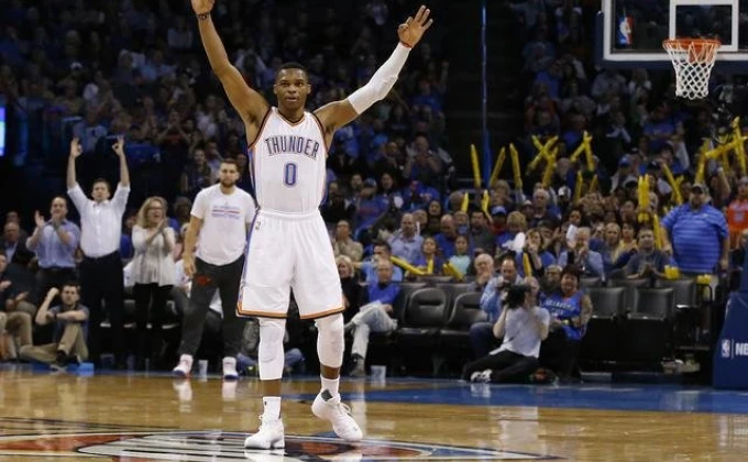 Ništa novo, Rasel Vestrbruk je ponovo napravio tripl-dabl, 15. u sezoni. Fantastični bek Oklahome ubacio je 21 poen, imao 15 asistencija i 13 skokova, Tander je slavio protiv Hjustona.