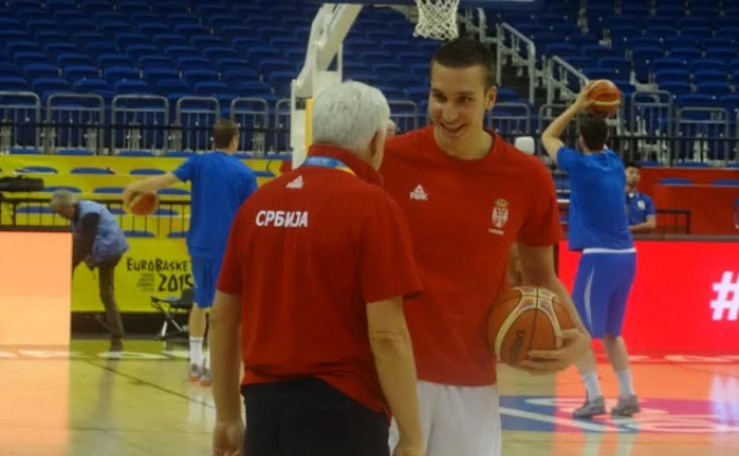 Opklade Miroslava Nikolića i Bogdana Bogdanovića postale su zaštitni znak reprezentacije Srbije, pa tako ni uoči večerašnje utakmice sa Portorikom nije izostala ta vrsta pripreme.