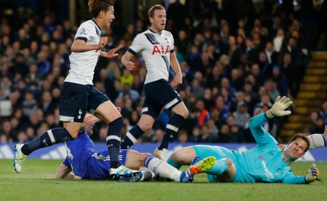 U samom finišu prvog poluvremena, Bane Ivanović je poklonio loptu igračima Totenhema, Eriksen je proigrao Sona, a ovaj pogodio prvi ugao za 0:2.