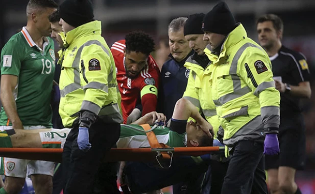 U utakmici između republike Irske i Velsa, koja je okončana bez pobednika, veliki peh zadesio je fudbalera Evertona Šejmusa Kolmana.