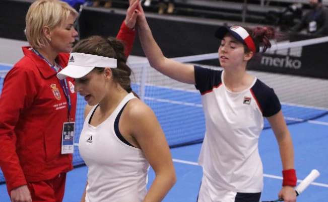 Prvi bod Srbiji danas je donela sjajna Ivana Jorović koja je slavila sa 6:2, 4:6 i 6:4 protiv Katarine Piter, da bi kasnije Nina Stojanović izgubila svoj meč od Magde Linet sa 1:6 i 2:6, pa se morao igrati dubl kako bi se saznao pobedik ovog meča.