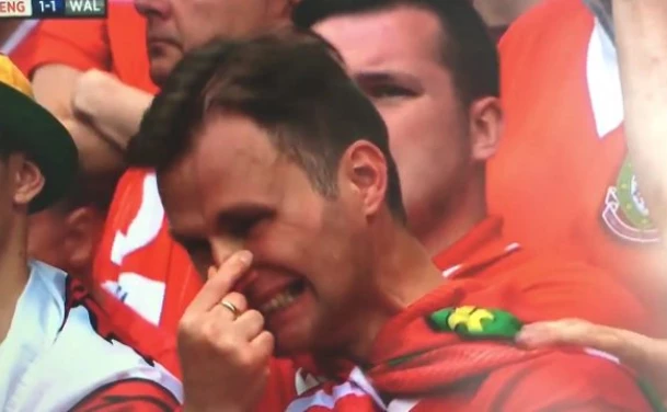 Jedan od navijača Velsa strahovao je od scenarija koji se i dogodio pa je pri rezultatu 1:1 u završnici meča ronio gorke suze duboko verujući da će njegov nacionalni tim izdržati pritisak Engleza.