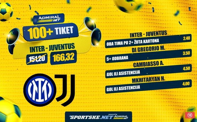 AdmiralBet 100+ tiket - "Derbi Italije za kvotu 166,32!
