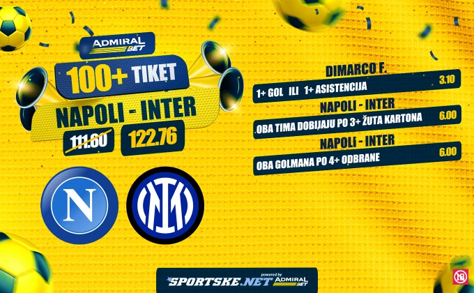 AdmiralBet je i za ovaj meč pripremio poseban 100+ tiket, a za kvotu 122,76 potrebno je da: