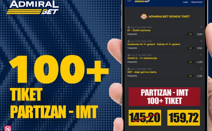 AdmiralBet je za ovaj meč pripremio tiket sa kvotom 159,72, a za nju je potrebno da:
