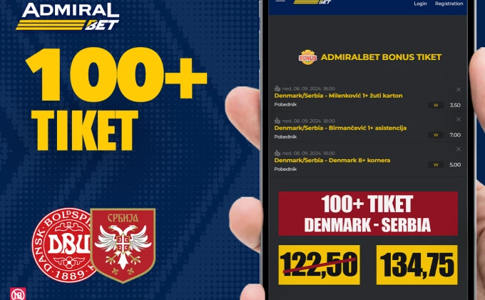 AdmiralBet 100+ tiket - Srbi i Danci za kvotu 134,75!