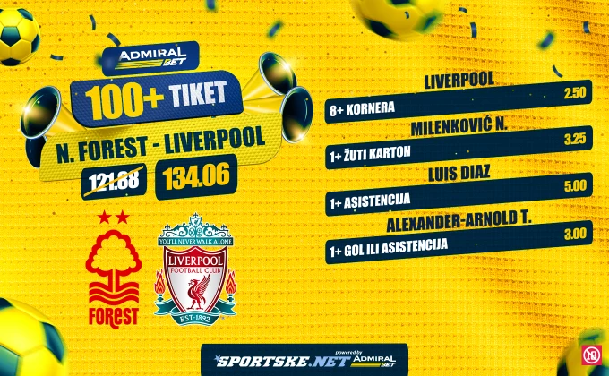 AdmiralBet je i za ovaj meč pripremio poseban 100+ tiket, sa kvotom 134,06, za koju je potrebno da: