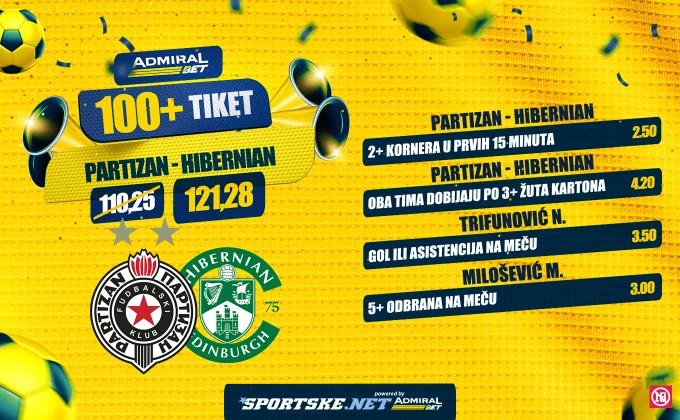 AdmiralBet 100+ tiket - Trifunović, Milošević, korneri i kartoni za kvotu 121,28
