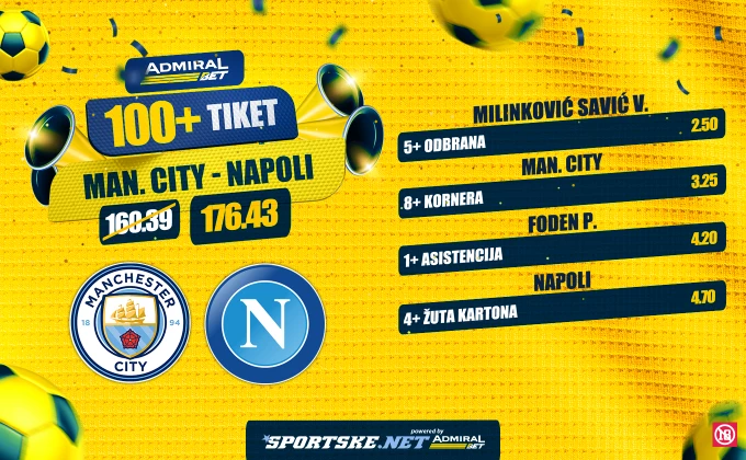 AdmiralBet je i za ovaj meč pripremio poseban 100+ tiket sa kvotom 176,43, za koji je potrebno da: