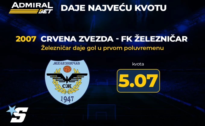AdmiralBet daje najveću kvotu - 5.07 na gol Železničara!