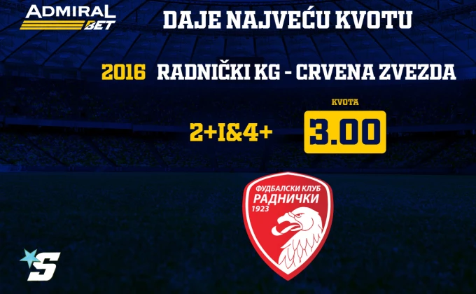 Pošto je AdmiralBet sponzor Radničkog, obezbedio je za svoje igrače i najbolju kvotu za ovaj duel.