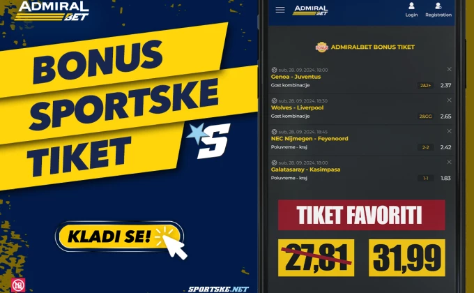 AdmiralBet i Sportske su pripremile za danas još jedan primamljiv bonus tiket.