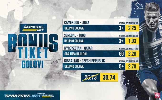 AdmiralBet i Sportske bonus tiket - Igrajte na golove za kvotu 30,74!