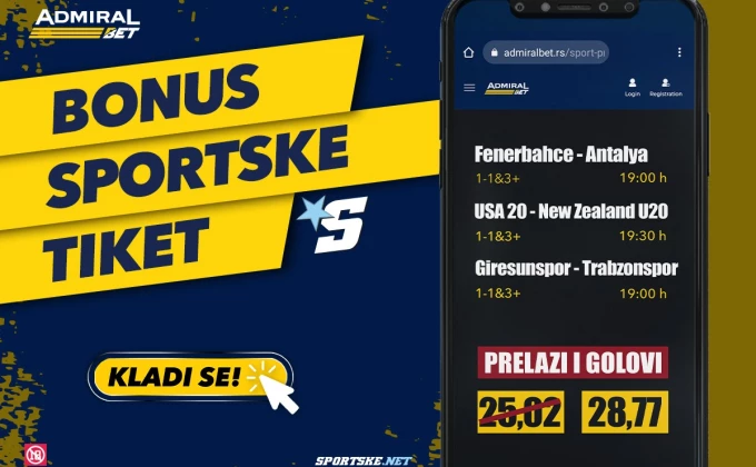 AdmiralBet i Sportske vam svakodnevno donose bonus tikete, odnosno tikete koji u sebi imaju uvećanu ukupnu kvotu.