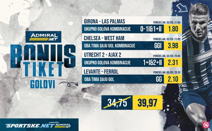 AdmiralBet i Sportske bonus tiket - Vreme je za golove i kvotu 39,97!