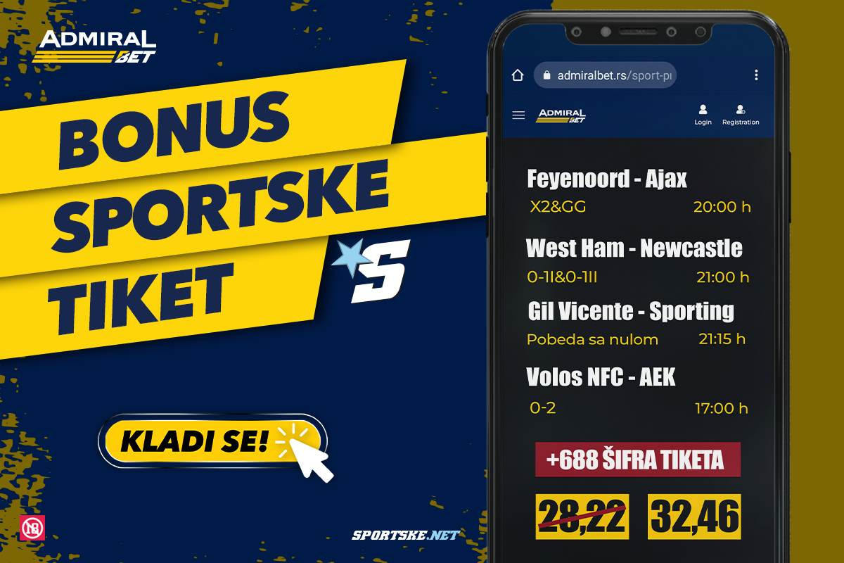 AdmiralBet je danas, kao i svakoga dana, u saradnji sa Sportskim sastavio veoma zanimljiv bonus tiket usred bogatog programa.