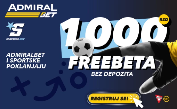 Naša akcija se nastavlja postanite deo AdmiralBet zajednice, kao dobrodošlicu poklanjamo 1000 dinara FreeBeta.