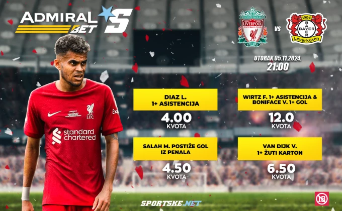 Posebno se ističe opklada da će Luis Dijaz imati makar jednu asistenciju. Mada je pitanje hoće li početi pre sjajnog Kodija Gakpa. Kvota je 4.00, igraće sigurno, samo da li od prvog minuta...