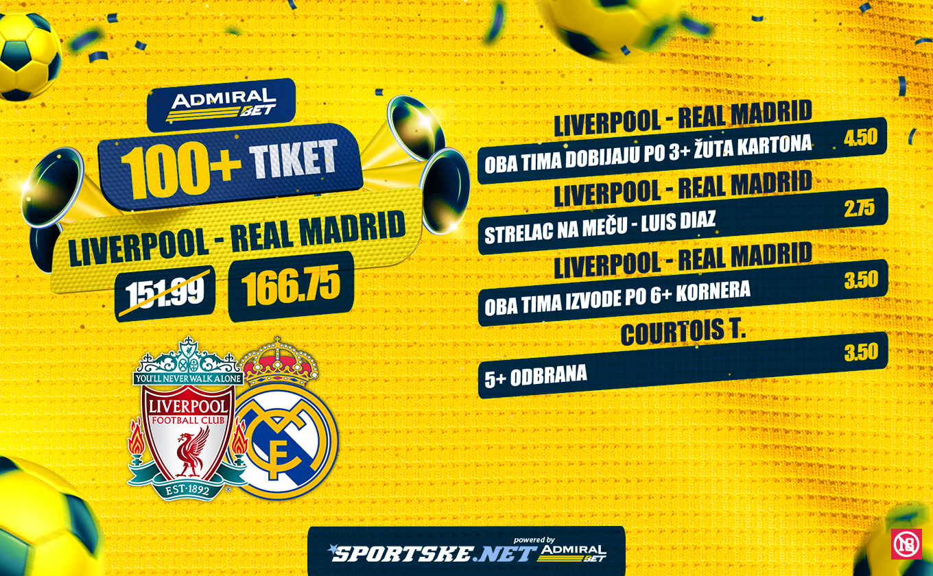 Fudbaleri Liverpula i Real Madrida sastaju se danas na "Enfildu", a AdmiralBet je tim povodom pripremio za svoje igrače sjajne igre.