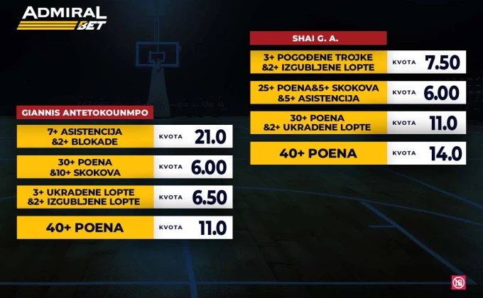 Nekoliko sjajnih igara i još bolje kvote na AdmiralBet za obojicu igrača. Recimo, da će Janis kao lider ekipe upisati preko sedam asistencija i imati više od dve blokade kvota je 21.0.