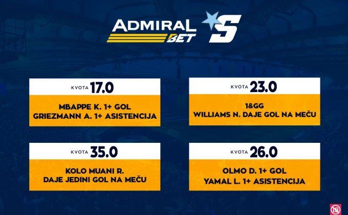 AdmiralBet je, naravno, i za ove mečeve pripremio posebne specijale.