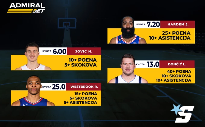 AdmiralBet NBA specijal - Nikola, Luka, Harden i Vestbruk za pravi užitak večeras!