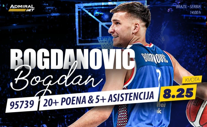 Bogdan ubacuje 20+ poena i ima 5+ asistencija uz kvotu 8.25. Taj tip možete odigrati OVDE.