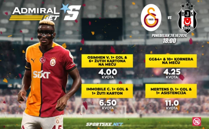 Izdvajaju se četiri opklade, a u centru pažnje biće napadači oba tima Galatin Viktor Osimen i Bešiktašev Ćiro Imobile.