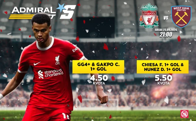 Uz tip GG&4+ i gol Kodija Gakpa, kvota je 4,50, a da će Kjeza i Nunjez dati po barem jedan gol - 5,50, a ove specijale možete birati OVDE.
