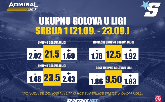 AdmiralBet je za vas pripremio veoma zanimljiv specijal Super lige Srbije, a to je dobro poznata igra ukupno golova u čitavom kolu.
