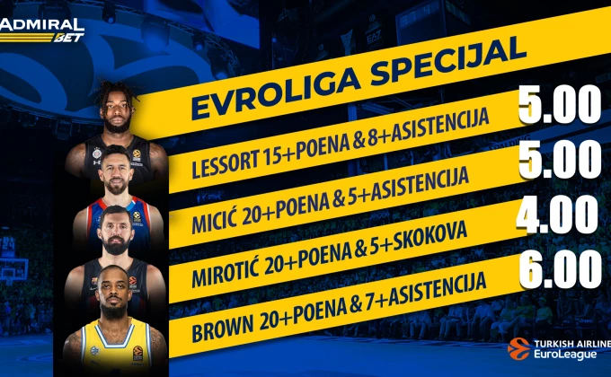 Kao i obično, očekuje vas bogata ponuda na sajtu AdmiralBet kada je Evroliga u pitanju.