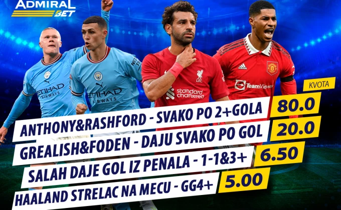 Konkretno, to su Entoni i Rašford, koji ukoliko obojica daju po dva ili više pogotka, donose kvotu 80.0! Zatim, tu su Griliš i Foden, tu je Salah da daje gol iz penala i da dolazi 1-1&3+ što je kvota 6.50, te da će Haland biti među strelcima u goleadi protiv Njukasla.