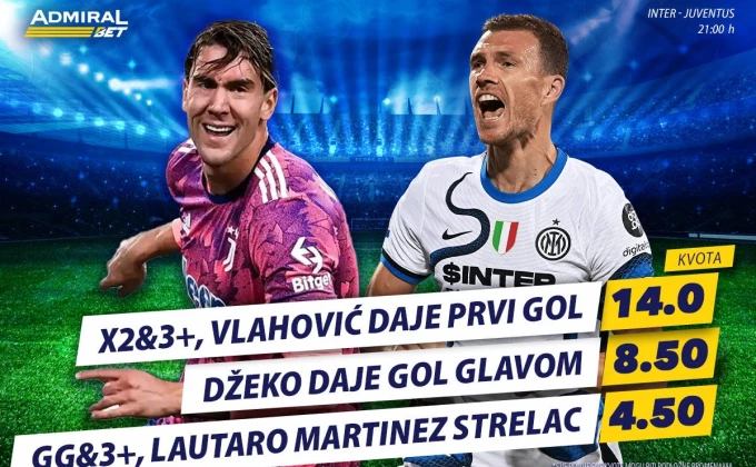 Da Edin Džeko odgovori na drugoj strani i postigne pogodak glavom, AdmiralBet plaća kvotom 8.0! A, da vidimo goleadu, odnosno GG3+ i da Lautaro pritom bude strelac, kvota je 4.50.