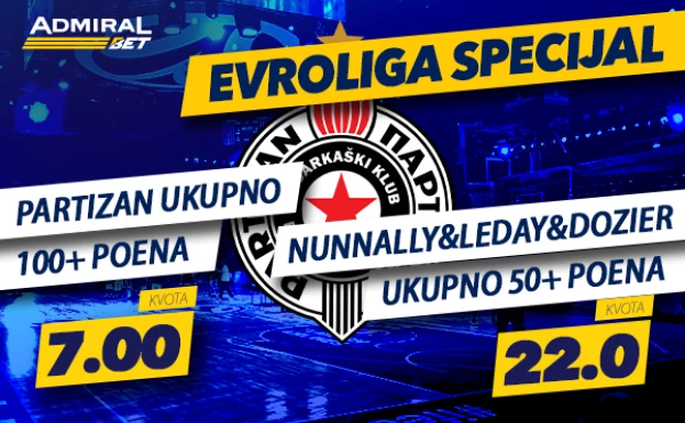 Navijači priželjkuju još jedno napadački moćno izdanje izabranika Željka Obradovića, pa ukoliko verujete u "crno-bele" i probijanje veličanstvene granice od 100 poena, AdmiralBet vam daje kvotu 7.