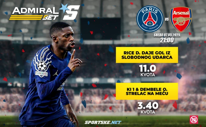 AdmiralBet je i za ovaj meč pripremio poseban specijal, a u centru pažnje su Usman Dembele i Deklan Rajs.