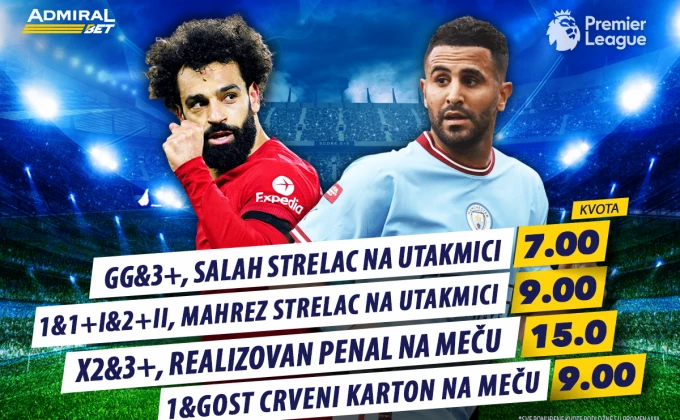 Fudbaleri Mančester sitija i Liverpula sastaju se u velikom derbiju, a AdmiralBet je i za ovaj meč priredio poseban specijal.