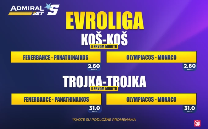 Kvota koju daje AdmiralBet je 31.00 za oba meča!
