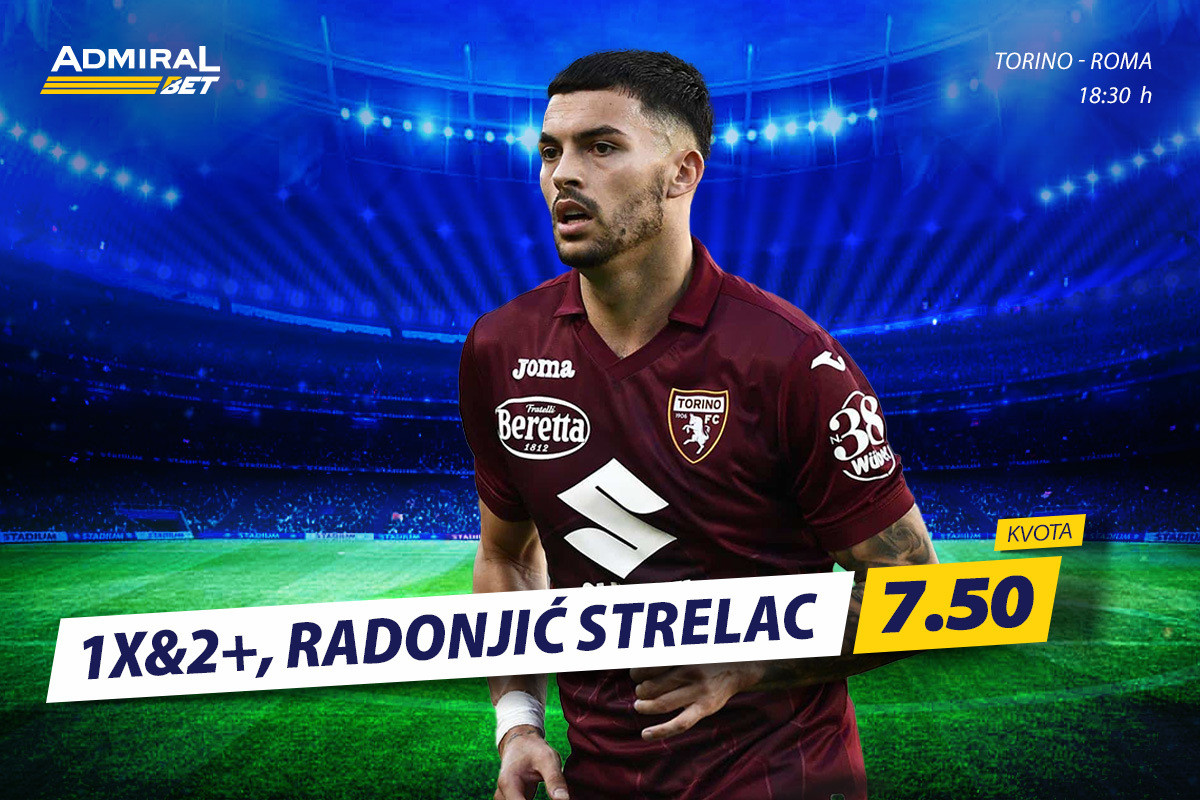 Potom je u 18.30 na programu zanimljiv duel između Torina i Rome. Na jedno strani biće VMS, Ilić i Radonjić, a na drugoj Nemanja Matić. AdmiralBet izdvaja Nemanju Radonjića kao strelca uz tip 1X&2+, kvota je čak 7,50.