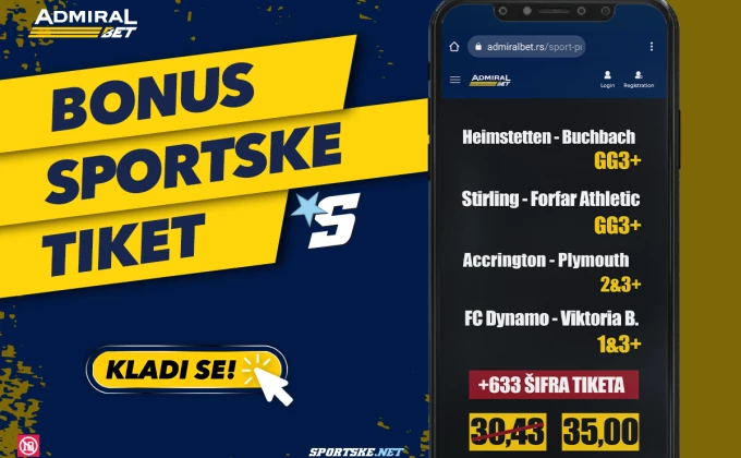Način znate, odete na AdmiralBet, u dnu strane piše "tiket", kliknite i pred vama će biti bonus tiketi. Broj ovog je +633, kvota uvećana kao što vidite sa 30.43 na 35.