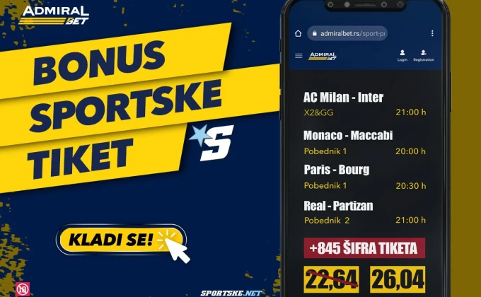 Danas vam nudimo odličan Bonus tiket AdmiralBeta, koji vam donosi uvećanu kvotu sa 22,64 na 26,04.