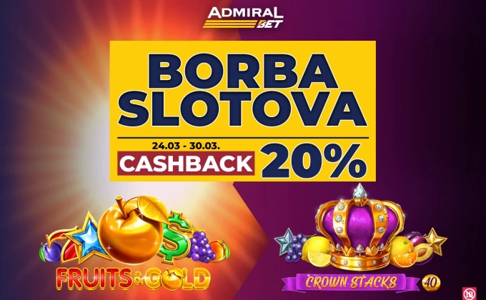 AdmiralBet je i ove nedelje lansirao novu verziju Borbe slotova, promocije koja donosi uzbuđenje, adrenalin i konkretne dobitke! U nedeljnoj slot borbi snage odmeravaju Fruits & Gold i Crowns Stacks 40, a na tebi je samo da izabereš stranu, ili obe – i da zaigraš sa sigurnošću, jer te svakako očekuje 20% kešbeka.