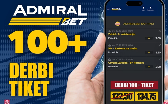 AdmiralBet je i za današnji meč pripremio poseban 100+ specijal, kao i uvek, u tri koraka možete doći do ogromne kvote - 134,75.