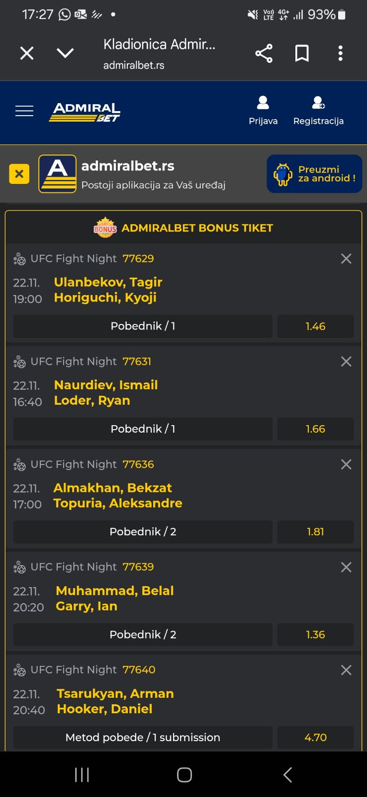 Uz to, tu su pobede Ulanbekova nad Horigučijem, kao i Naurdijev protiv Rajana Lodera, kompletiraju tiket koji bi mogao da vam donese solidan profit.