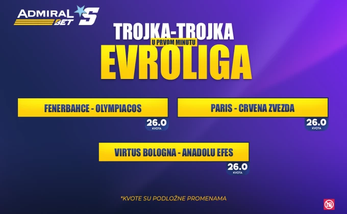 Evroliga je još uzbudljivija uz AdmiralBet -Koševi i trojke u prvom minutu za sjajne kvote!