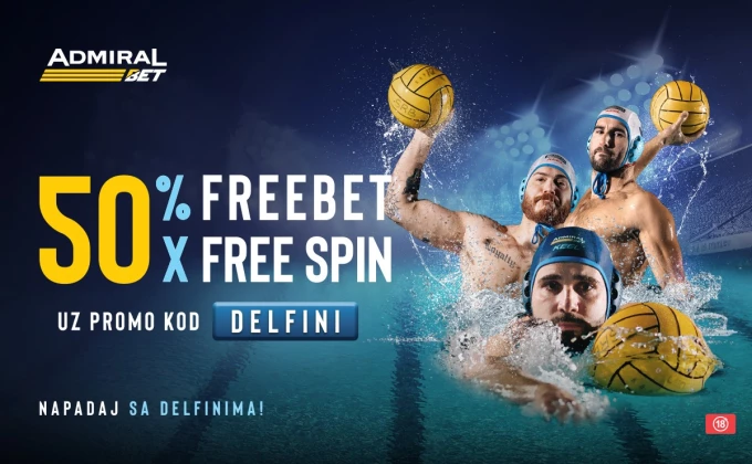 Sve mečeve Evropskog prvensta za vaterpoliste možete ispratiti na AdmiralBet.rs, gde vas čeka promo kod DELFINI koji vam donosi 50% freebeta i 50 besplatnih spinova na prvu uplatu depozita svakog dana prvenstva.